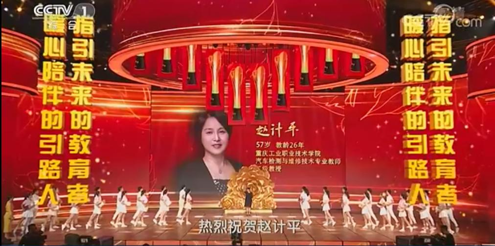 2019年9月10日,为热烈庆祝新中国成立70周年和第35个教师节,教育部和中央广播电视总台主办的“2019寻找最美教师”大型公益活动颁奖典礼在央视播出。在颁奖典礼上,公布了10位最美教师、1个最美教师团队的先进事迹。重庆市中华职业教育社团体社员学校重庆工业职业技术学院教师赵计平荣获2019年“最美教师”称号。