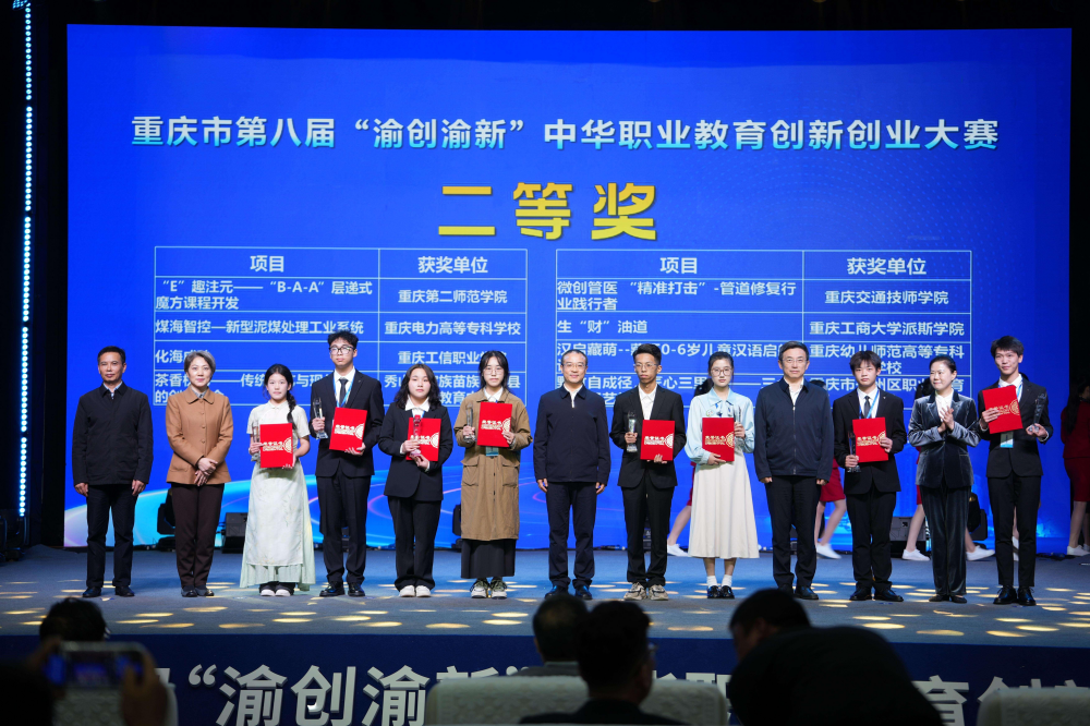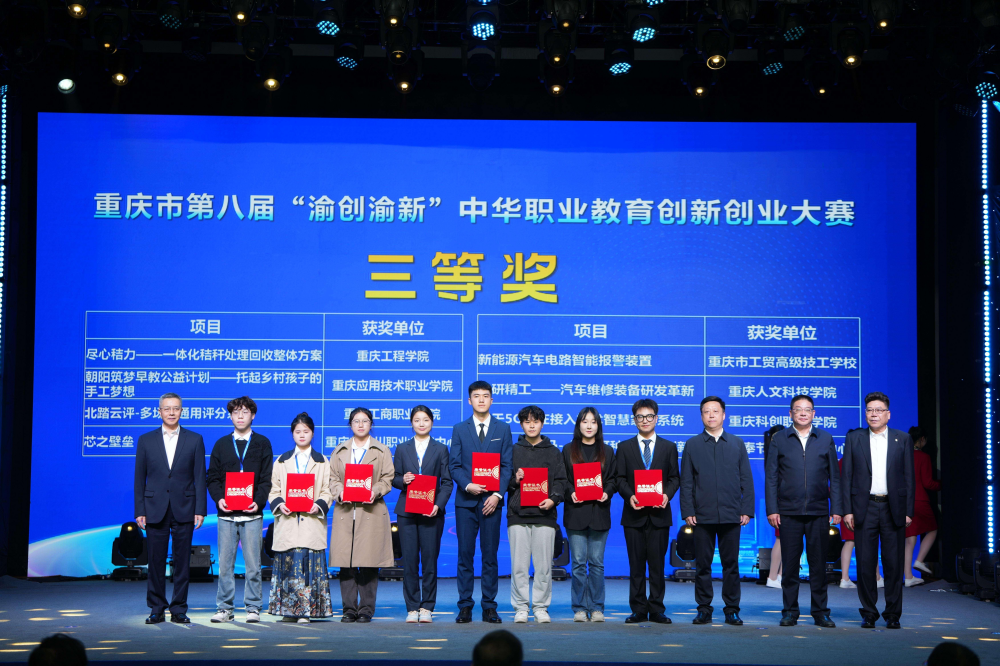 重庆市“渝创渝新”中华职业教育创新创业大赛是重庆市中华职业教育社重要品牌项目之一。赛事涵盖全市中职、高职和应用技术本科所有院校,历届赛事累计近500万余人次师生参与,1.3万个项目参赛,市赛项目孵化率高达62%,并推动在全国双创大赛中取得优异成绩。“渝创渝新”中华职业教育创新创业大赛作为展示职业教育助力发展新质生产力的大舞台、职业院校创新创业教育成果比拼的大擂台,覆盖面广、参与人数多、赛事层级高、社会影响大,已助力上万名职教学子圆梦创业,成为重庆职业教育的一张亮丽名片。