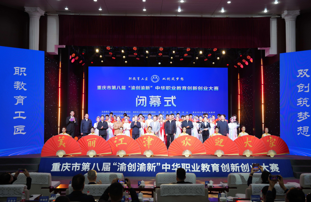 闭幕式上,重庆工商学校的学生们以一支充满活力与创意的《江津欢迎您》舞蹈,热情洋溢地展现了江津的风土人情与青春活力。优秀企业家分享了创新创业经验。举行了“成果转化”项目签约仪式,来自重庆电子科技职业大学的《岩警先锋》等5个项目与企业现场签约,助推创新创业成果转化。最后,全场在激昂奋进的《中国职教之歌》旋律中缓缓落下帷幕,为这场盛大赛事画上了圆满的句号。