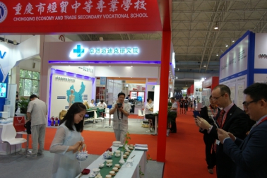 5月7日,重庆市经贸学校的节目《秀芽飘香》登上了展厅舞台进行表演,学生们柔美的舞姿,精湛的茶艺,赢得了观众的掌声和好评。3天的展出时间里,我市2所学校的展台受到了热烈的关注和点赞,参展观众纷纷到旅游学校展台前要求合影,到经贸学校手工制茶和茶艺表演展台围观,品尝永川秀芽的茶香,不时有国内外的学校和企业到展位观摩体验,询问洽谈合作事宜,较好的起到了展示宣传、观摩借鉴、交流提高的作用。